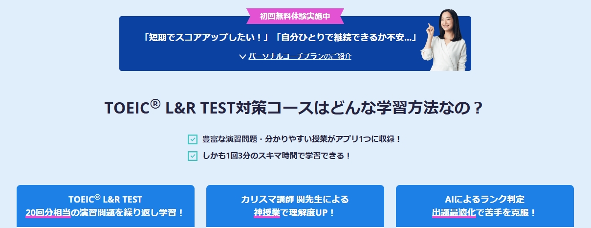 これからTOEIC対策を始めたい方も、スコアに伸び悩んでいる方も、まずは無料体験からスタートしてみてはいかがでしょうか?