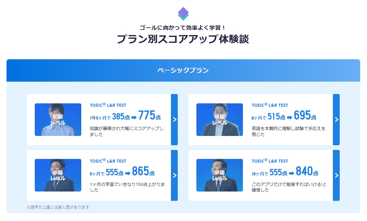 「1日10分でも毎日続けることで、2〜3ヶ月で200点以上伸びた」という利用者も多数います。