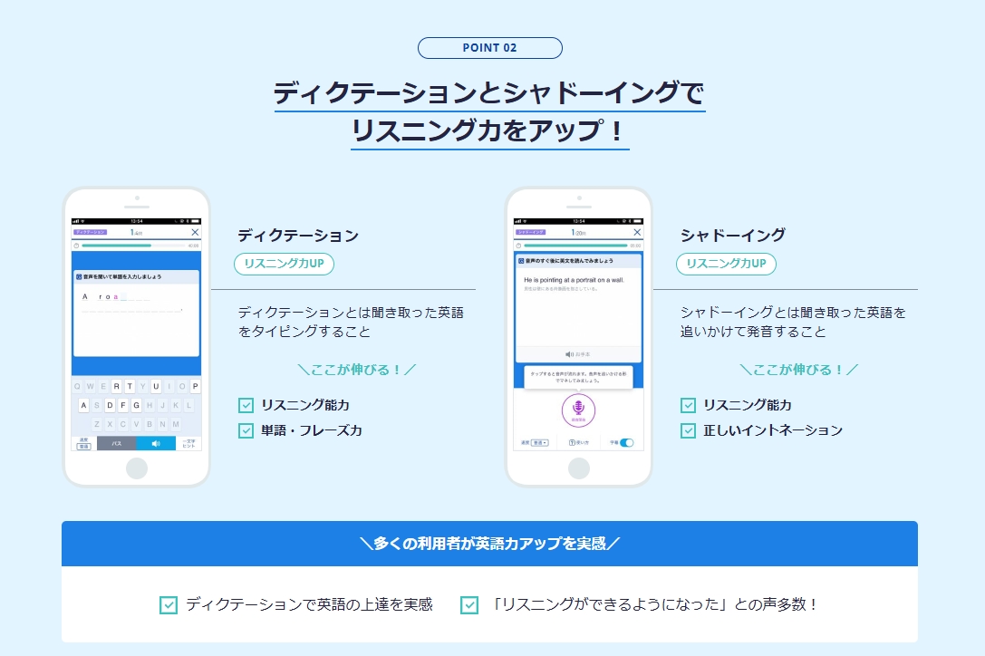 TOEICのスコアアップだけでなく、実用的な英語力・会話力の向上にも役立つのが嬉しいポイント。