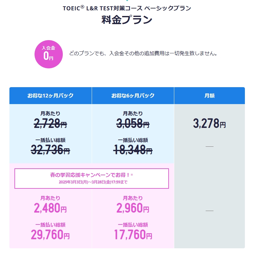 | ベーシックプラン | 月額3,278円〜 | TOEIC対策に特化 |